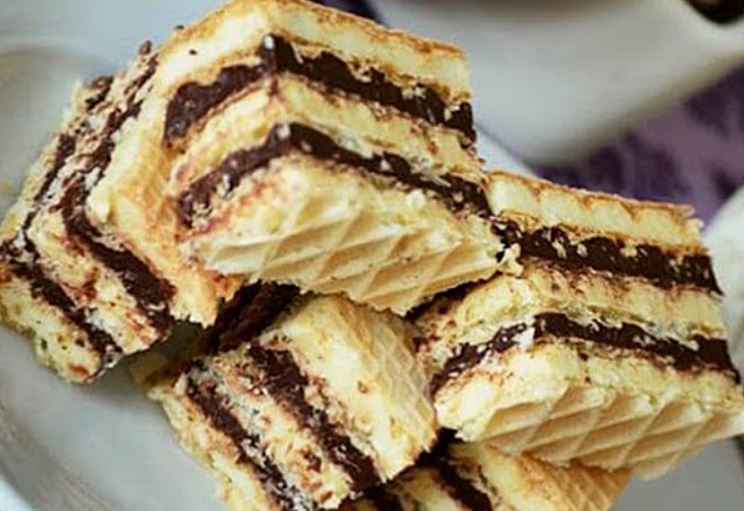 Masu prohladiti i staviti masu sa čokoladom na list oblande, preko mase opet list oblande, pa bela masa pa list oblande.