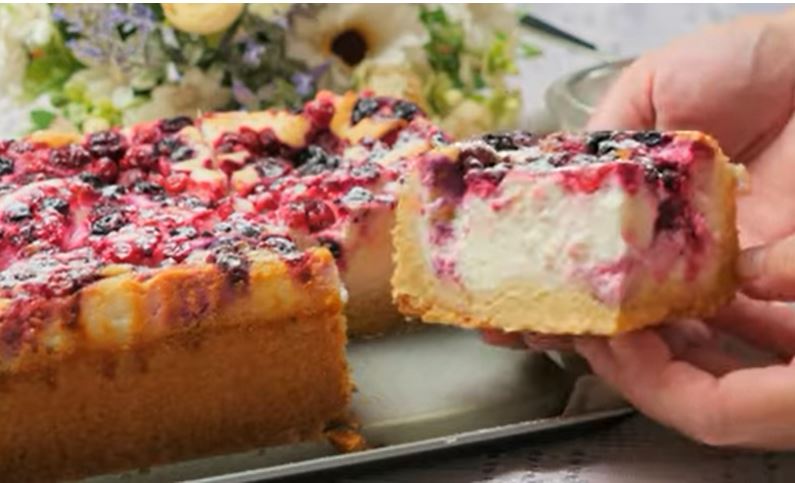 Jedan pravi letnji kolač. Osvežavajuć i lagan sa kiselkastim crvenom voćem. Lako i brzo se pravi, a odličan je hladan.