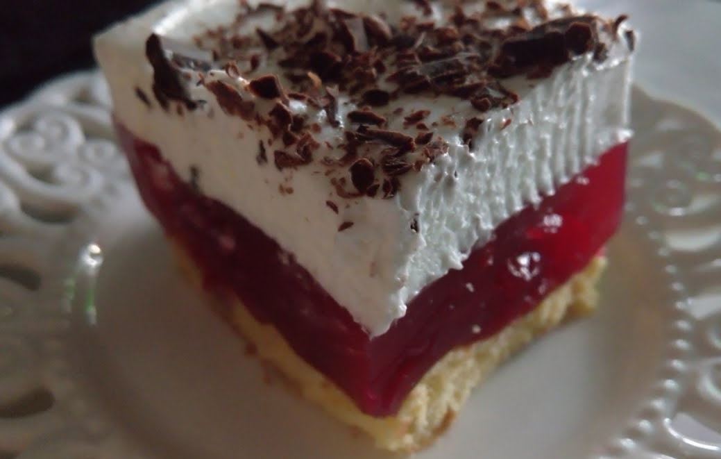 Kolač sa višnjama i pudingom. Izdašan, kremast.