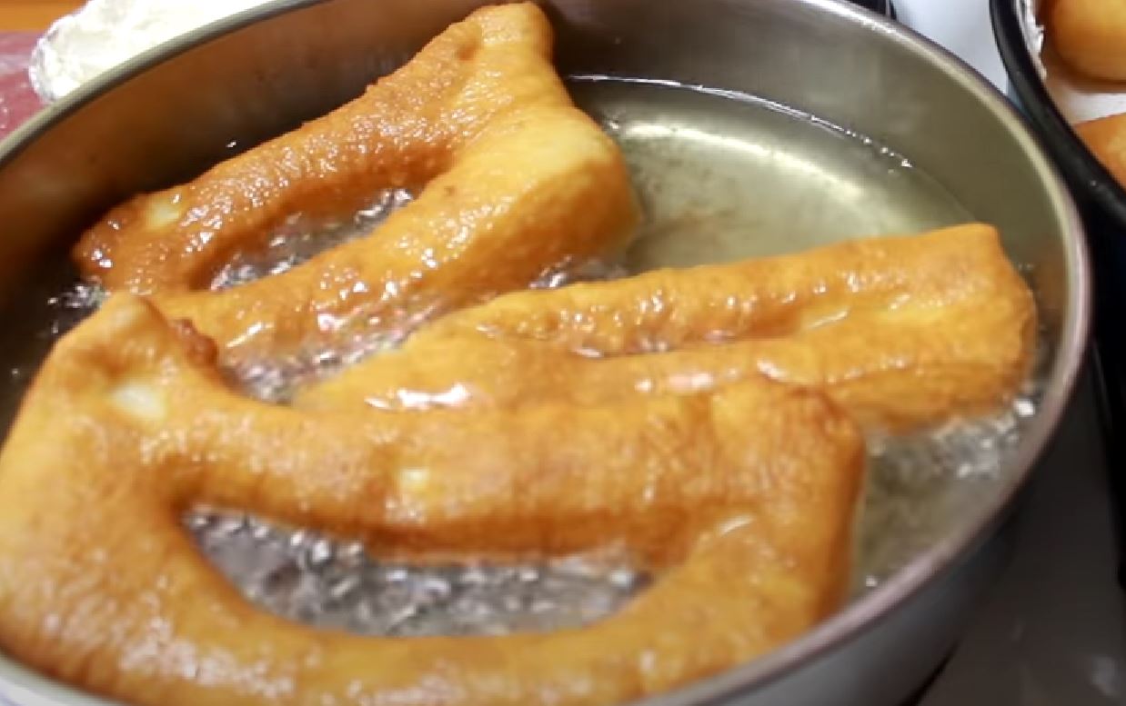 Sada je bitno ostaviti da odstoji oko 20-25 minuta (zavisi koliko je toplo u prostoriji). Mekike fino narastu, supljikavost se poveca. Zagrejte ulje, vrhove prstiju svaki put umocite u brasno da vam se mekike ne zalepe. Bitno je jos da ih uzimate veoma blago, ne pritiskajuci jer ce se spljostiti i nestace pola rupica iz njih. Spustajte u vrelo ulje, gornje strana ide prvo dole. Kada dobro porumeni, okrenete drugu stranu da porumeni. Vadite na salvet da se ocede.
