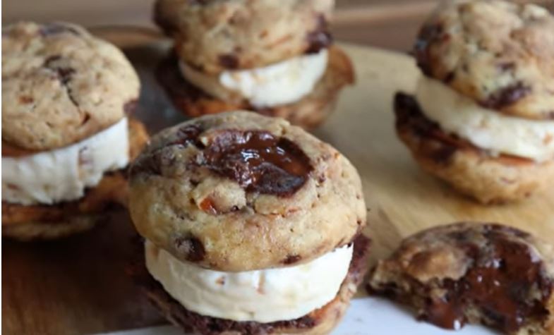 Sladoled u sendviču od domaćih čokoladnih kolačića. Zaista užitak okusom i teksturom. Naravno ne treba se ovako slagat kao sendvič, možete jednostavno u zdjelicu stavit sladoled i po mogućnosti tople kolačiće.
