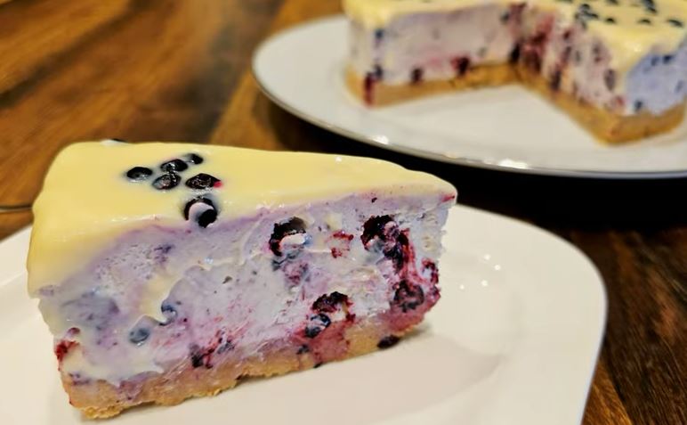 Tortu možete ukrasiti dodatno svježim borovnicama i mljevenim keksom, po želji.