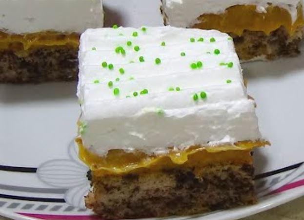 Umutiti slatku pavlaku sa šećerom u prahu. Naneti šlag preko ohlađenog kolača.
