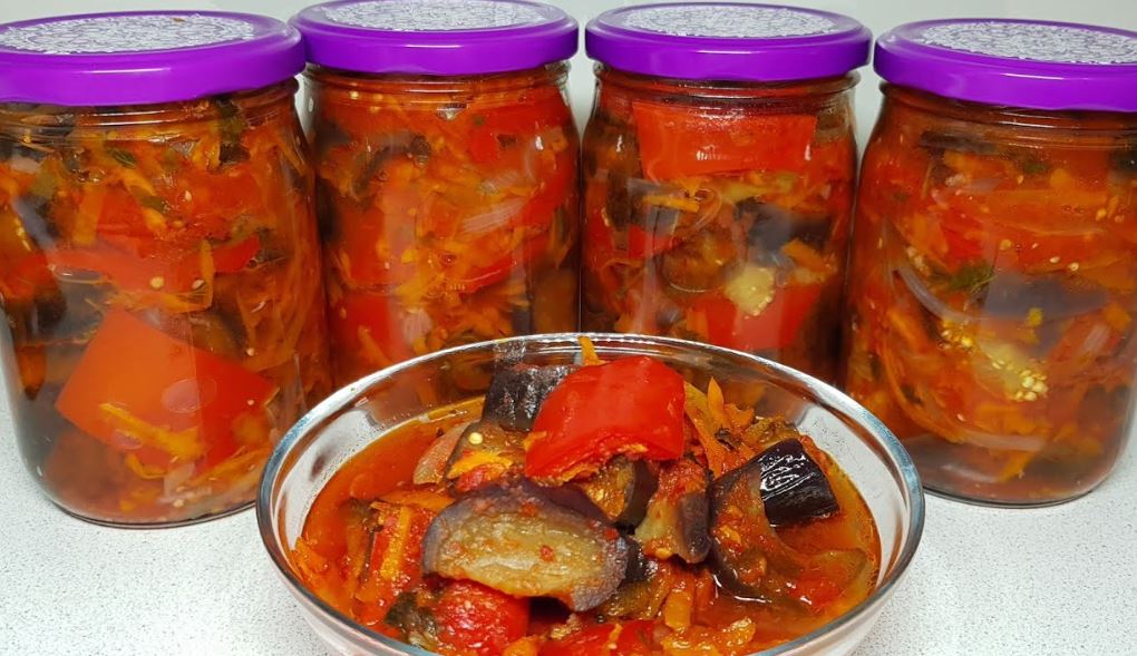 Priprema: Patlidžan isecite, pa posolite, promešajte i ostavite da odstoji nekih 10-15 minuta. U veliki tiganj sipajte ulje i paradajz koji ste izblendirali. Kad krene da ključa dodajte šećer i pola kašike soli. Promešajte i kuvajte 10 minuta nakon ključanja, a zatim dodajte rendanu šargarepu, iseckanu papriku i ljutu papriku, kao i seckani crni luk i dobro promešajte.