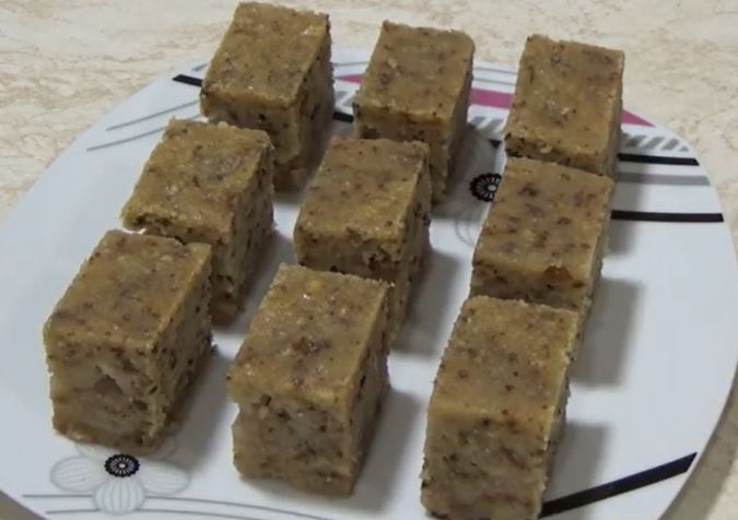 Prosejati brašno pomešano sa praškom za pecivo. Dodati griz, seckane orahe, suvo grožđe i izmešati. Sipati vodu i ulje i dobro umešati da ne bude grudvica.