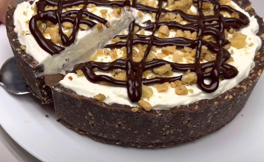 Umutite slatku pavlaku pa dodajte šećer u prahu. promešajte pa stavite preko prvog fila. stavite u frižider na pola sata. Ukrasite po želji orasima i čokoladom.
