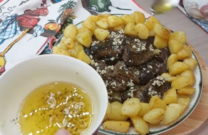 zatim preliti dresingom od bijelog luka i ulja.
