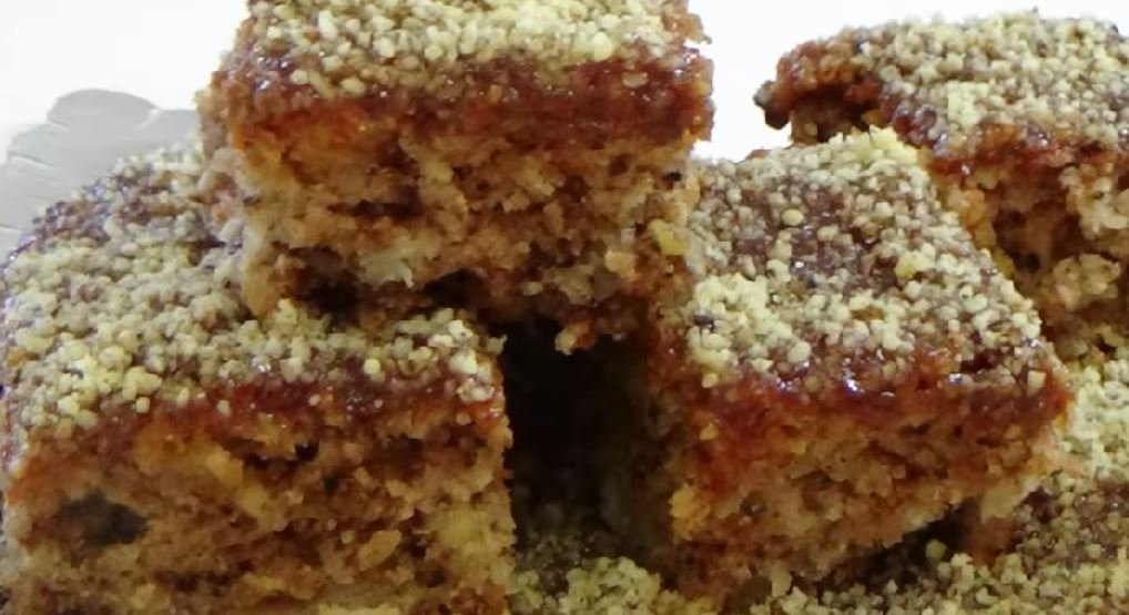 Vruć kolač posuti šećerom u prahu ili premazati džemom od kajsije pa posuti mlevenim orasima.