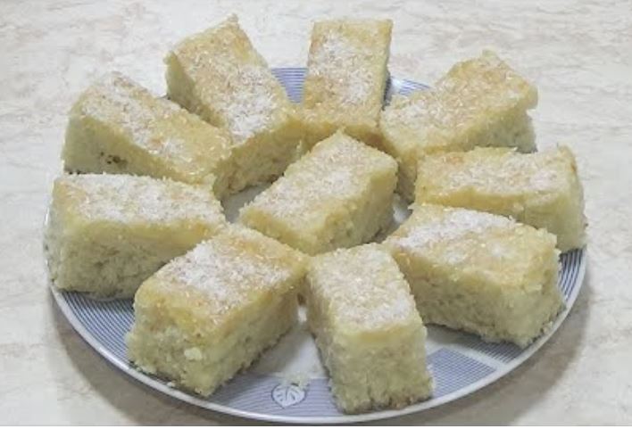 U šećer dodati vanilin šećer, pa sipati sok i ulje i mešati da se šećer istopi. Dodati brašno pomešano sa praškom za pecivo i umešati. Zatim dodati kokosovo brašno i umutiti. Pleh veličine 24 x 34 cm podmazati i sipati smesu. Peći na 180 stepeni 20 do 30 minuta.