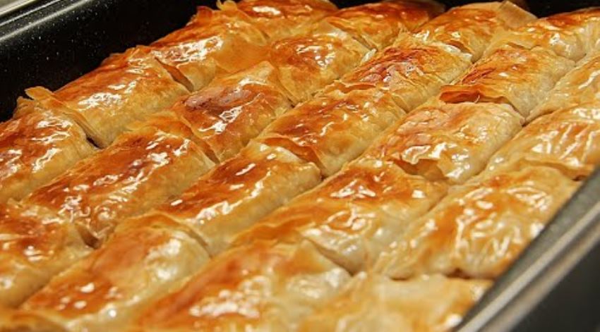 Tepsiju premazati maslacem i dodati kore koje smo urolali. Odmah ćemo ih narezati i premazati maslacem