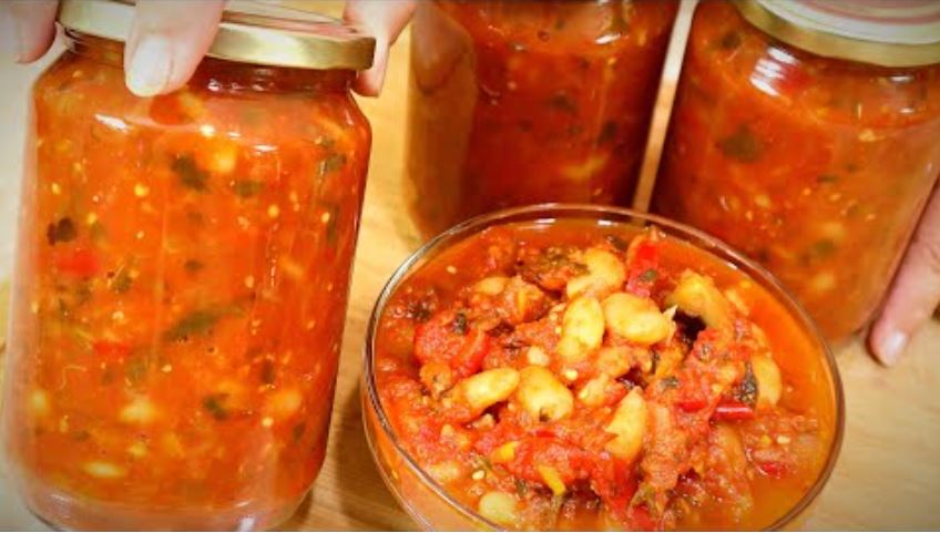 Zimnica od paradajza, paprike, pasulja i patlidzana. Dodatak belog luka, peršuna i ljute paprike čini ovu salatu za zimu fantastičnom. Zimnica recept.
