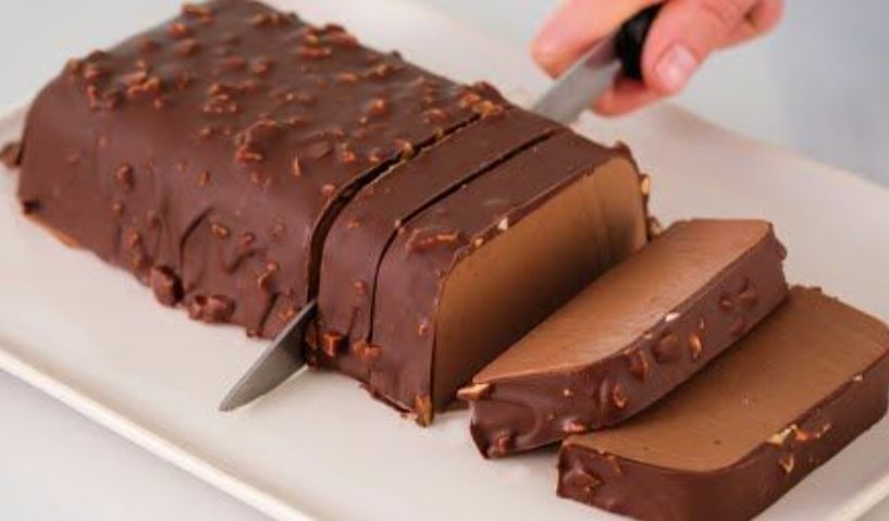 Priprema: U mleko dodajte želatin i stavite da se zagreje, pa dodajte čokoladu. Mešajte dok se ne istopi, pa kada proključa ostavite još 3 minuta. Sipajte u vatrostalnu posudu dimenzija 26x12x10 cm (ili približnih dimenzija). Dobijenu smesu sipajte u posudu, pa stavite u frižider na 2 sata ili u zamrzivač na sat vremena. Istopite čokoladu sa lešnicima sa uljem i prelijte preko kolača i ostavite 15 minuta u frižideru da se stegne.