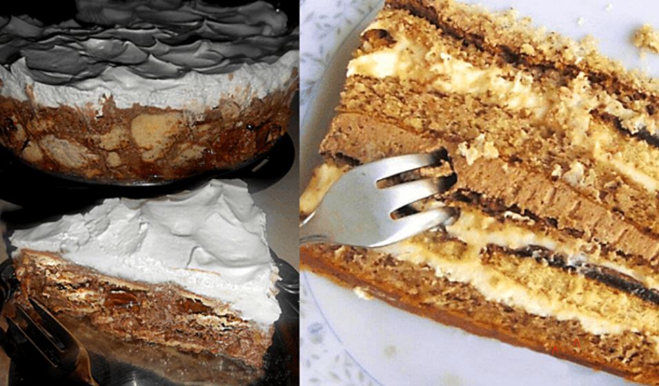 Kremu preliti preko keksova i dobro izmiješati, te smjesu izliti u kalup, poravnati i na kraju premazati umućenim šlagom.