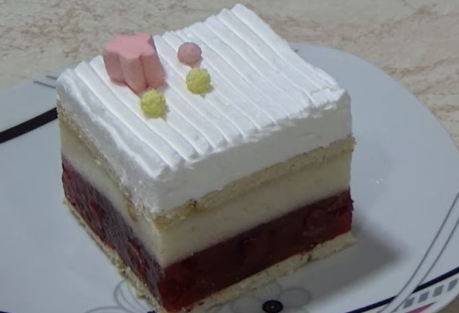 Za drugi fil, razmutiti puding sa malo soka od višanja. U šerpu sipati vodu i šećer i kuvati dok ne provri. Sipati višnje u vrelu vodu i kuvati 2-3 minuta. Zatim sipati puding i kuvati dok se ne zagusti. Vruć fil sipati preko prvog fila. Preko drugog fila poređati drugu polovinu keksa. Pleh pokriti samolepljivom folijom i ostaviti kolač da se dobro ohladi.