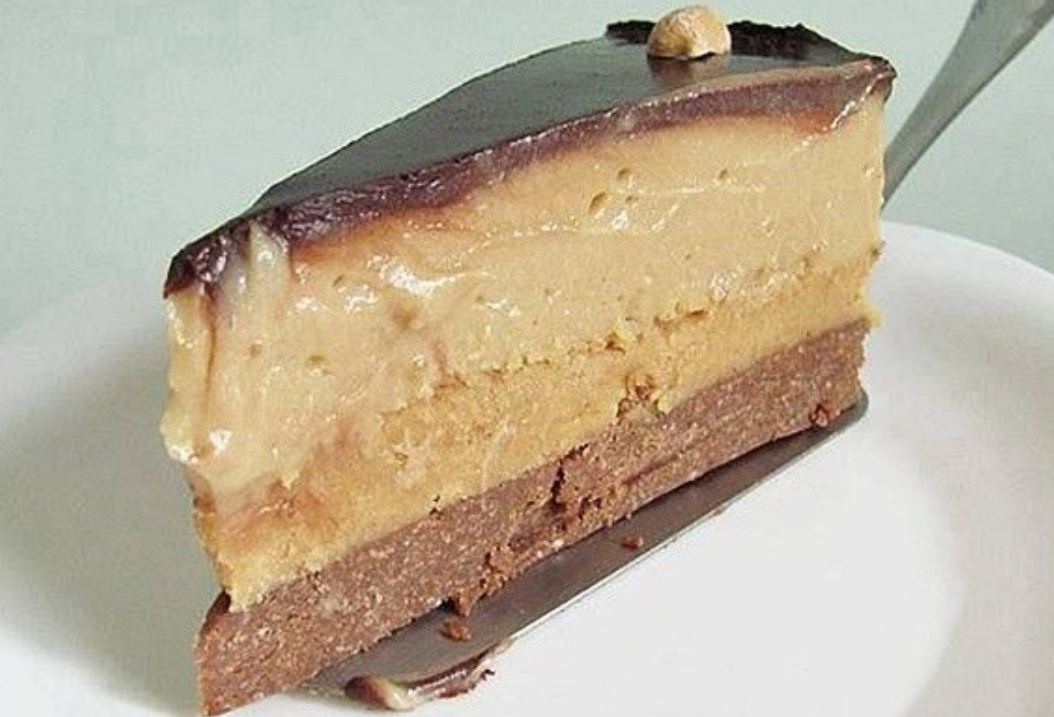 Podloga od keksa i kikiriki sloj su čvrsti poput kolača Bajadera. Zato je preporuka da parče torte odstoji na sobnoj temperaturi 10 – 15 minuta pre serviranja.