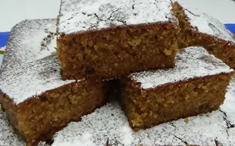 Sve sastojke sjediniti izliti u pleh 25/35cm. Peći u zagrejanoj rerni na 200c/25min. Kad se prohladi posipajte šećerom u prahu, glazurom od čokolade ili jednostavno premažite džemom i posipajte mlevenim orasima.