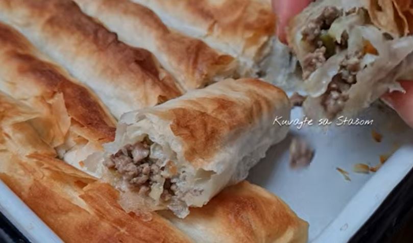 KUJNA,TOP VESTI | November 4, 2023 izvor:Kuvajte sa Stašom Pita sa mesom kao iz lokalne pekare Sastojci: 600 mlevenog mešanog mesa 500 g kora za pitu 350 g praziluka so biber suvi začin uljem Peći 20 min na 220°C ili dok ne porumeni. Detalje pripreme pogledajte u videu. JAFFA OBLATNE:Brze, jednostavne i ukusne oblatne. Najbolji recept za domaće krofne: Fine, mekane, ukusne…