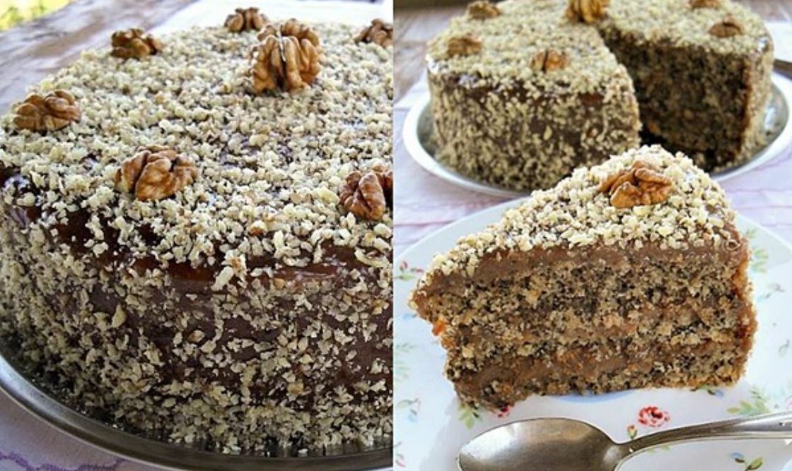 Jaja dobro umutiti sa šećerom da posvetle i budu penasta (desetak minuta). Uliti ulje i vrelu vodu i još malo mutiti. Dodati brašno pomešano sa orasima i praškom za pecivo i sjediniti sa jajima blagim prevrtanjem.