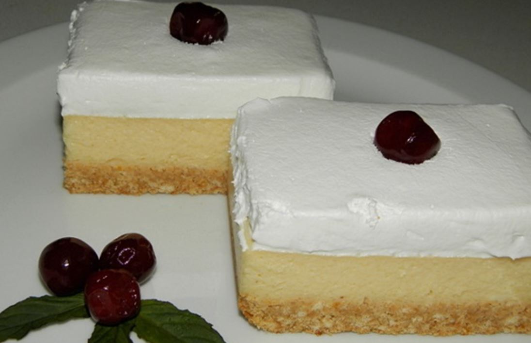 Kad se napola ohladi, dodamo jedan žumanjak i 150 g maslaca, dobro izmješamo i izlijemo na podlogu od keksa. Kad se kolač ohladi ukrasimo ga šlagom.