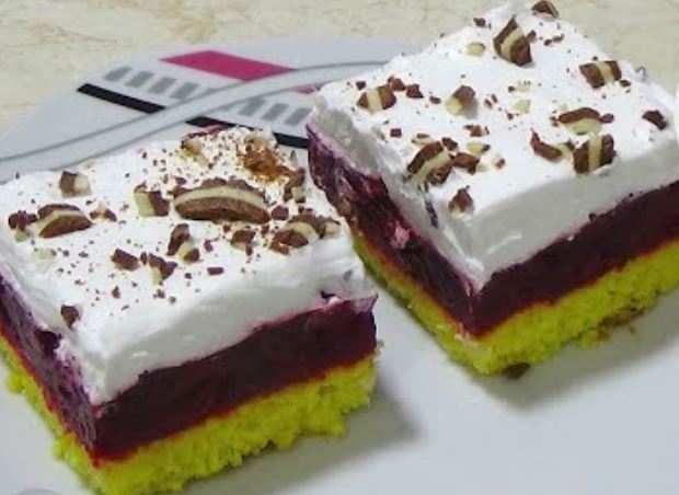 Za ukrašavanje umutiti slatku pavlaku sa šećerom u prahu. Premazati kolač umućenim šlagom. Po želji posuti rendanom čokoladom.