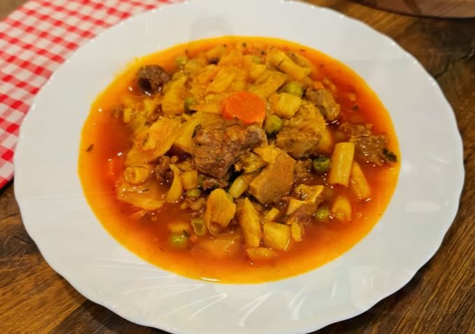 Pa tako ovaj bosanski lonac sadrži i boraniju i kupus, i grašak čak. Malo mesa da to sve zamaskiram. I ručak je na stolu. Na Almirin način.