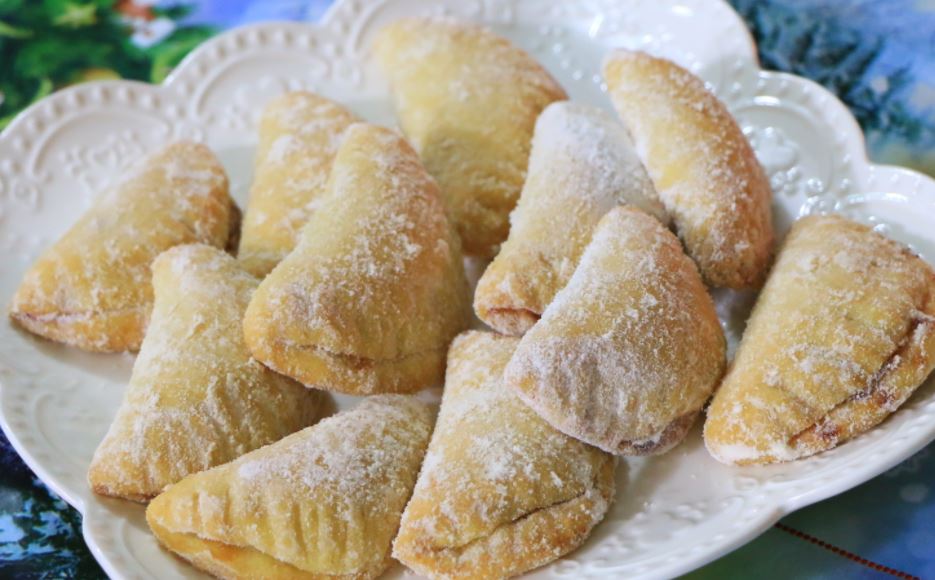 Izmešajte vodu, vanilin, šećer, prašak za pecivo, ulje, sirće. Dodajte brašno i zamesite meko testo. Ostavite da stoji 10 minuta pa premesite. Čašom prečnika 6 cm. ili 8 cm. vadite kolutove, na svaki stavite malo džema, preklopite i viljuškom pritisnite krajeve.