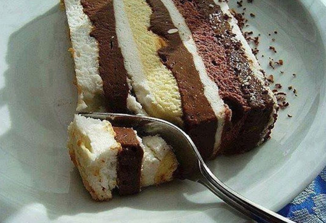 Umutiti 5 belanaca i 5 kasika secera u cvrst sneg i lagano dodati prah pudinga od cokolade. Ispeci koricu.