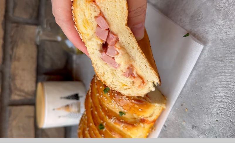 U činiju sipati brašna, malo ostaviti sa strane, napraviti udubljenje, sipati suvi kvasac, dodati šećera i sipati mlakog mleka. Nakon nekih pet minuta, umesiti testo, postepeno dodavajući brašno koje ste ostavili sa strane i ostaviti pola sata da odstoji. Prethodno premazati sa malo ulja i prekriti samolepljivom folijom ili krpom. Nakon toga rasklagijati u obliku pravougaonika iseći ivice i napraviti trke. Fil stavljati po sredini i prebacivati trake jednu preko druge. Prebaciti na pleh, ostaviti da odstoji prekriveno krpom još desetak minuta zatim premazati žumacem, posuti susamom i peći na 180 stepeni u zagrejanoj rerni.