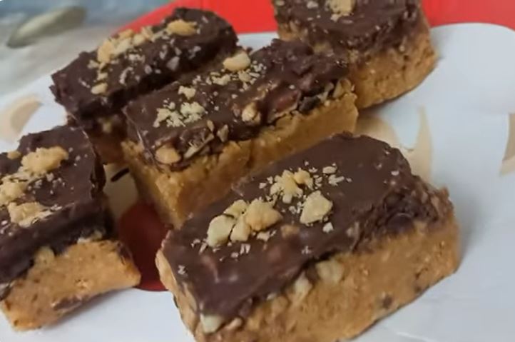 250g margarina umutite sa 200g šećera u prahu, dodate 200g kikirika i 200g mljevenog keksa. U pleh formirate podlogu od ove mase, zagladiti pa premazati sa 3 supene kašike meda, posuti sa 150g kikirika i sa nekih 50g sjeckane čokolade. Preko svega na kraju preliti istopljenu čokoladu.