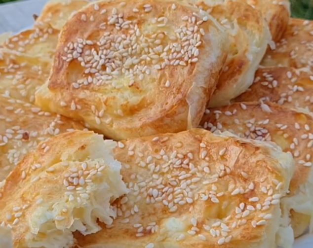 Prvu koru premazati uljem a svaku sledeću sa 2-3 kašike preliva. Poslednju koru premazati i urolati. Istoo učiniti i sa ostatkom. Prekriti folijom I staviti u zamrzivač bar 2 h ili preko noći. Posle 2h iseći a ako jesu bile preko noći, malo odmrznuti rolate da se opuste i da se mogu iseći nožem. Složiti na pleh i premazati prelivom 1 jajeta i 1 kašike kisele pavlake. Posuti susamom I uključiti rernu. Peći 25 min na 200°C.