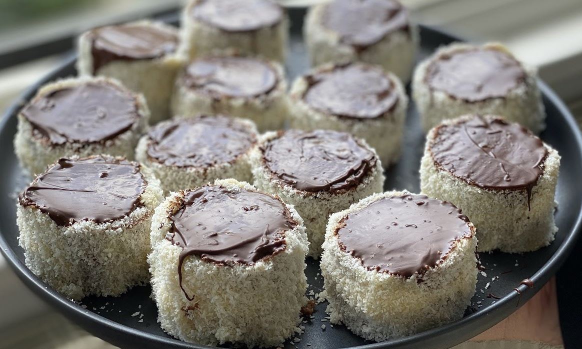 Secite koricu u krugove, filujte šubarice, urolajte u kkokos a po vrhu premažite rastopljenu čokoladu.