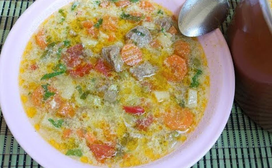 Na ulju prodinstati glavicu seckanog luka, pa dodati meso sečeno na kocke. Zatim, dodati malo vode prodinstati, staviti i povrće (šargarepu, celerov koren, peršunov koren, brokoli, karfiol, šaka graška, jedan krompir, šaka boranije).