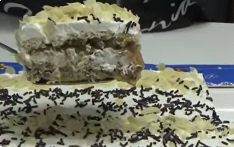 Nakon što ispečete kolač podelite na pola i preko ohlađene polovine naneti polovinu umućenog šlaga, drugu polovinu ostavite za preko kolača.