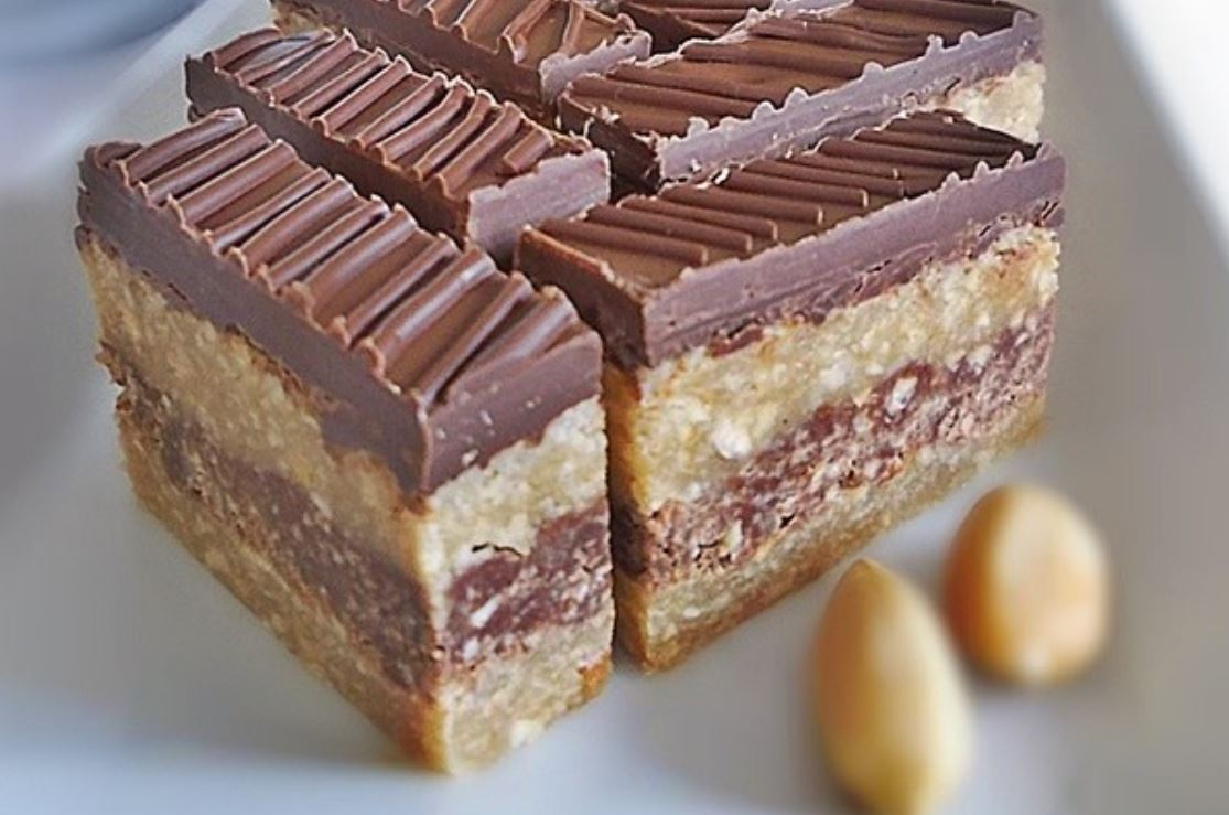 I na kraju na isti način preko tamne mase nanijeti drugi svijetli dio smjese. Čokoladu istopiti sa malo ulja i preliti ohlađenu bajaderu.