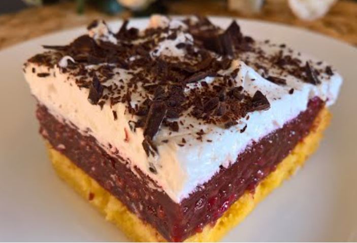 Izuzetno ukusan i kremast kolač sa ukusnim biskvitom i filom sa malinama i pudingom od čokolade.