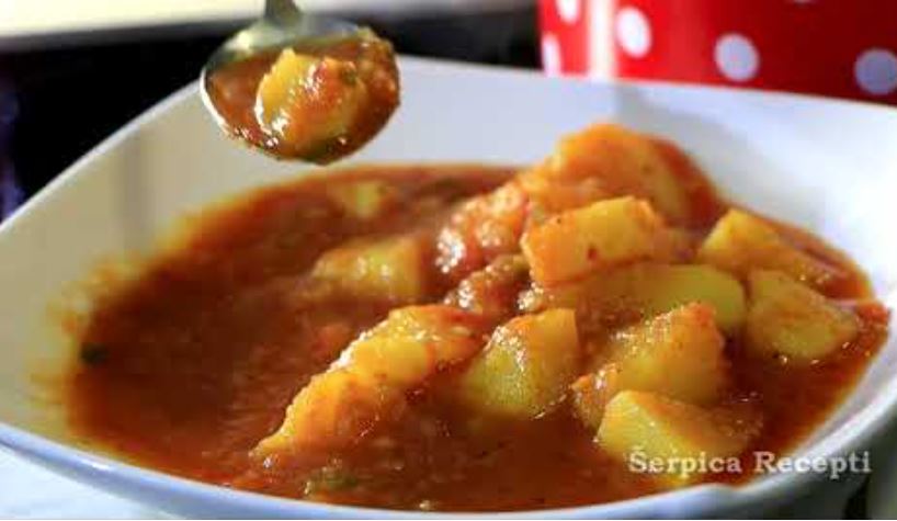 U šerpu stavite isećen krompir, dodajte pire od pečenog povrća, biber, sitnu papriku. Prelijte vodom da prekrije krompir.
