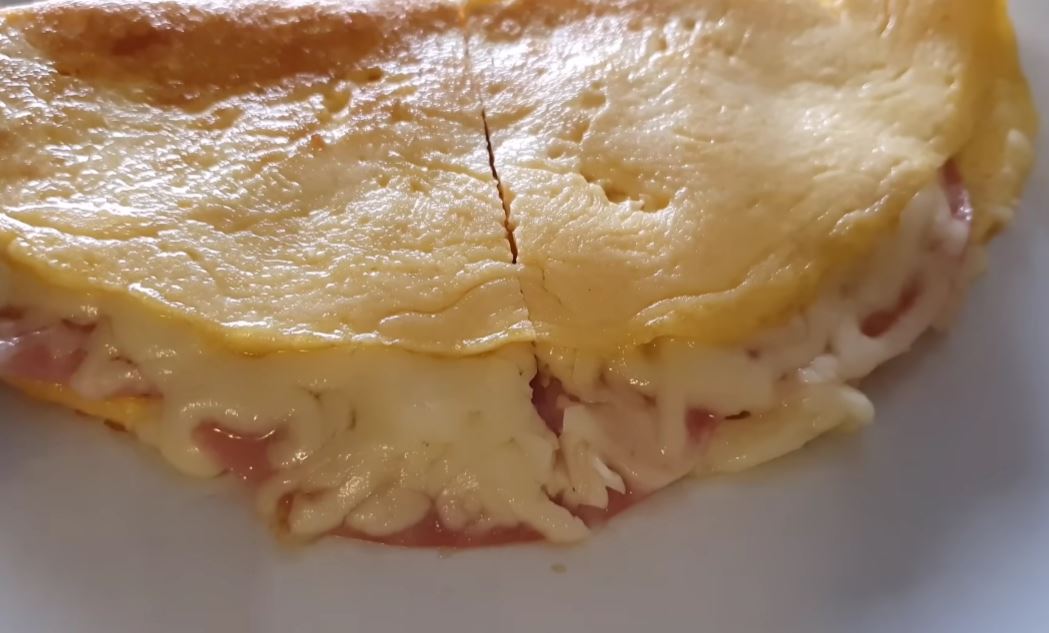 Priprema: U činiju razbiti jaja, posoliti i dodati kašiku vode, pa sve dobro umutiti. U tiganje staviti maslac, pa otopiti. Dodati jaja i mešati, dok su u tečnom stanju. Ugasiti šporet i poređati šunku preko jaja, a zatim i sir, pa preklopiti.