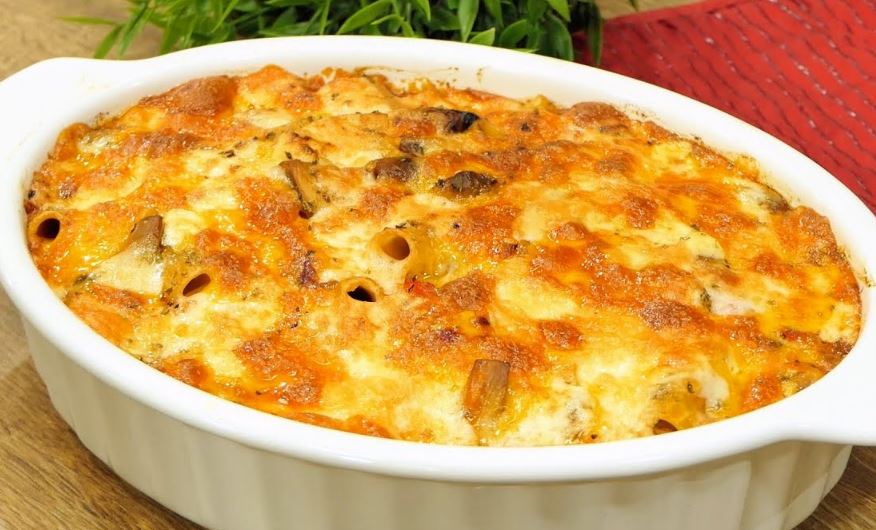 Makarone kuvajte u slanoj vodi 8 minuta na umerenoj vatri (7. stepen). U tepsiju sipajte polukuvane makarone i pečurke sa povrćem. Pažljivo promiješamo da se dobro sjedine. Na vrh dodamo sir narezan na sitne kockice, može i narendani. Pospite origanom.