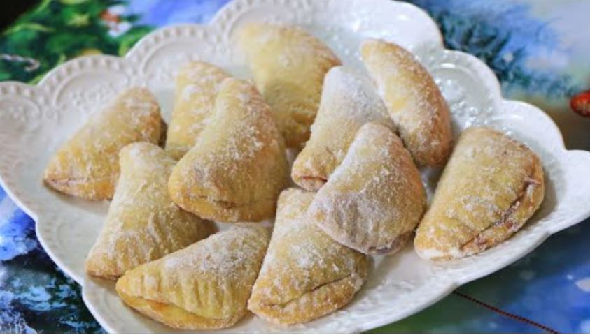 Izmešajte vodu, vanilin, šećer, prašak za pecivo, ulje, sirće. Dodajte brašno i zamesite meko testo. Ostavite da stoji 10 minuta pa premesite. Čašom prečnika 6 cm. ili 8 cm. vadite kolutove, na svaki stavite malo džema, preklopite i viljuškom pritisnite krajeve. Pecite u zagrejanoj rerni na 200 stepeni oko 30 – 35 minuta. Treba da blago porumene sa svih strana. Vruće uvaljajte u šećer. Prijatno!