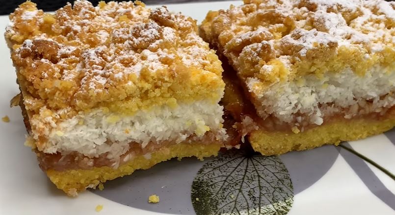 Prhki kolač sa dva nadjeva . Kokos i jabuke u kombinaciji sa prhkim tijestom daje savršeni ukus. Kolač naših majki uvjek daju tu čar na naše djetinstvo. Nadam se da ćete i vi isprobati kolač .