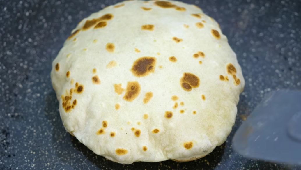 Stavite pita na zagrejan tiganj i pržite sa jedne strane dok ne porumeni, okrenite, ponovo pržite do zlatno braon boje. Džep će već početi da se formira. Još jednom okrenite pitu na stranu sa koje ste počeli da pržite i dok ne krene da raste.