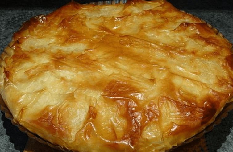 Okruglu tepsiju (ja sam koristila br. 26) podmazati uljem i staviti 2 kore ciji krajevi treba da prelaze ivice tepsije tj. da vise sa strane.