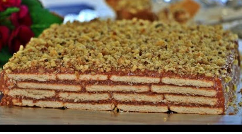 Sastojci i priprema: 800 gr. posnog keksa, 2 kesice pudinga od vanile, 200 gr. šećera, 1 litra vode, 200 gr. posnog margarina, 200 gr. posne čokolade, 200 gr. mlevenih oraha (još malo za ukrašavanje)