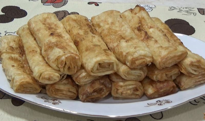 Na jednu koru naneti malo fila celom površinom. Preklopiti jednu trećinu kore sa desna na levo, pa drugu trećinu preko prve sa leva na desno. Premazati sa malo fila i uviti kao rolat. Tako ponavljati dok ima kora i fila. Svaka kora je jedan burekčić.