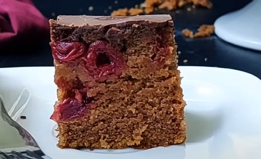 U jednoj činiji sjediniti brašno, kakao, cimet i sodu bikarbonu. U drugoj činiji sjediniti šećer, kiselu vodu, ulje i džem. Sjediniti sastojke iz obe činije, pa izliti u pleh obložen papirom za pečenje. Rasporediti višnje i peći u prethodno zagrejanoj rerni na 180°C oko 30 minuta (dosta zavisi od jačine rerne, zato je bitno proveriti čačkalicom da li je kolač pečen).