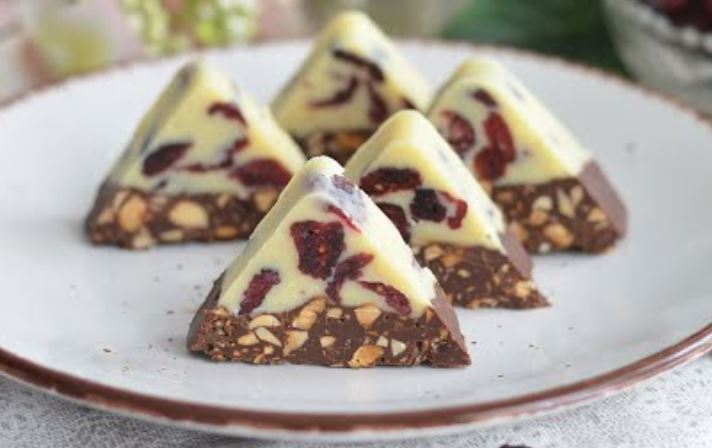 Trokutići sa brusnicama i čokoladom su odličan izbor za razna slavlja, jer ne oduzimaju puno vremena. Zanimljivog su izgleda i veoma su ukusni.