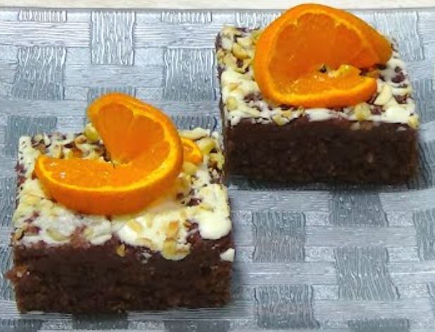 Koru izvaditi iz pleha i premazati filom. Istopiti čokoladu sa uljem i ukrasiti kolač. Posuti seckanim lešnicima i ukrasiti komadićima narandže. Ostaviti kolač da se čokolada stegne.