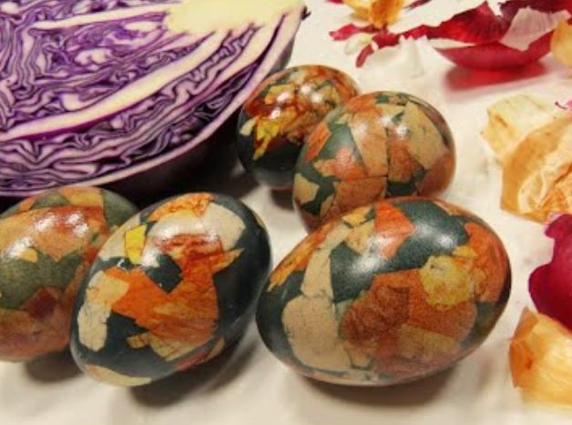 Kako napraviti mozaik uskršnja jaja (kupus i luk)