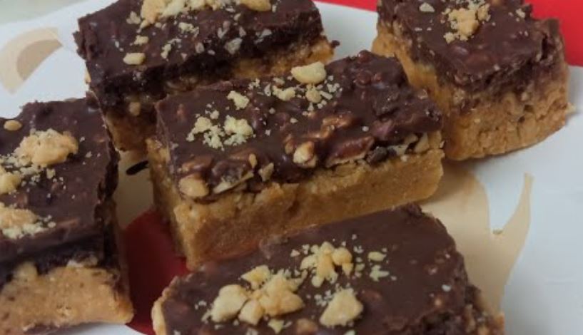 250g margarina umutite sa 200g šećera u prahu, dodate 200g kikirika i 200g mljevenog keksa. U pleh formirate podlogu od ove mase, zagladiti pa premazati sa 3 supene kašike meda, posuti sa 150g kikirika i sa nekih 50g sjeckane čokolade. Preko svega na kraju preliti istopljenu čokoladu.