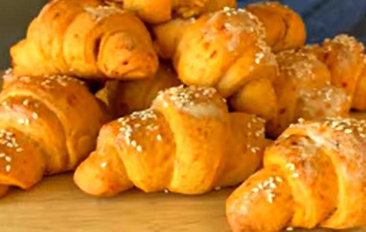Odlične kiflice sa ajvarom, koje se veoma brzo i lako pripremaj. Kiflice možete premazati posnim majonezom ili uljem.